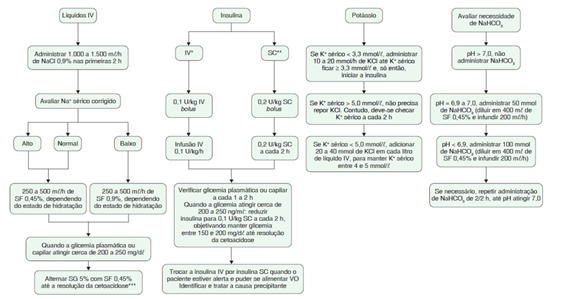 - A insulinoterapia só será eficaz se as medidas para restabelecimento da volemia estiverem em curso.