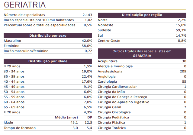 Colhemos os dados do último Demografia Médica no Brasil para você entender melhor como está o mercado atual da geriatria. Veja a seguir: